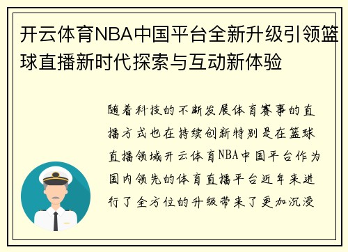 开云体育NBA中国平台全新升级引领篮球直播新时代探索与互动新体验